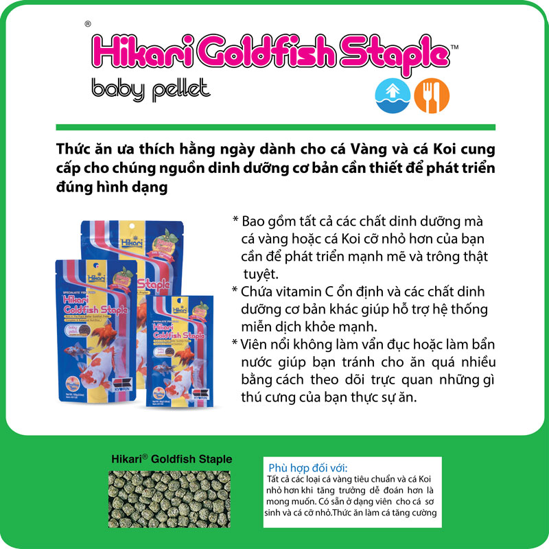 Hikari Goldfish Staple Baby là chế độ ăn ưa thích hàng ngày cho cá Vàng con và cá Koi con cung cấp cho chúng dinh dưỡng cơ bản cần thiết để cá sống lâu và khỏe mạnh.