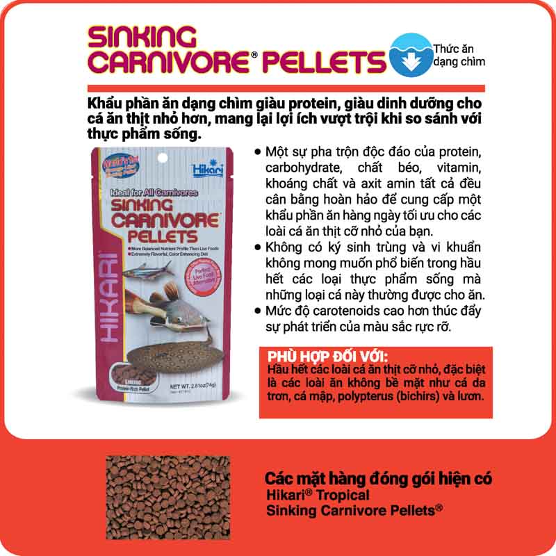 Hikari Tropical SINKING CARNIVORE PELLETS Một Chế Độ Ăn Uống Khoa Học Cho Hầu Hết Các Loài Ăn Thịt, Đặc Biệt Là Mèo, Cá Mập, Lươn, Bích & Cá Đuối.