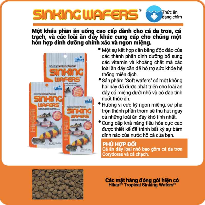 Hikari Tropical SINKING WAFERS Chế độ ăn uống khoa học cho cá da trơn, chạch và các loài ăn đáy khác.